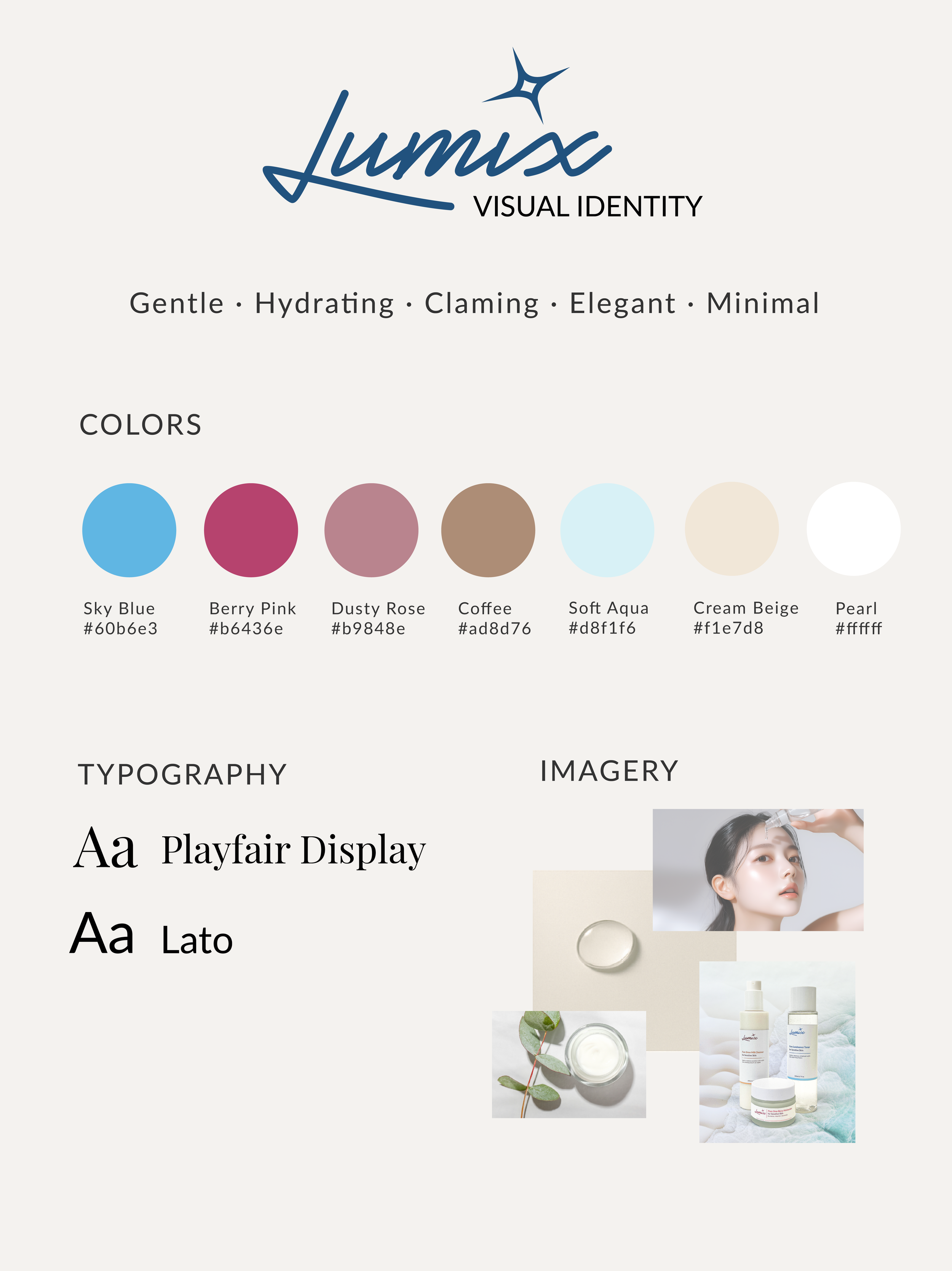 Designed for people with delicate, eczema-prone, or acne-sensitive skin, Lumix explores how visual design can convey softness, trust, and hydration, without sacrificing elegance or simplicity.