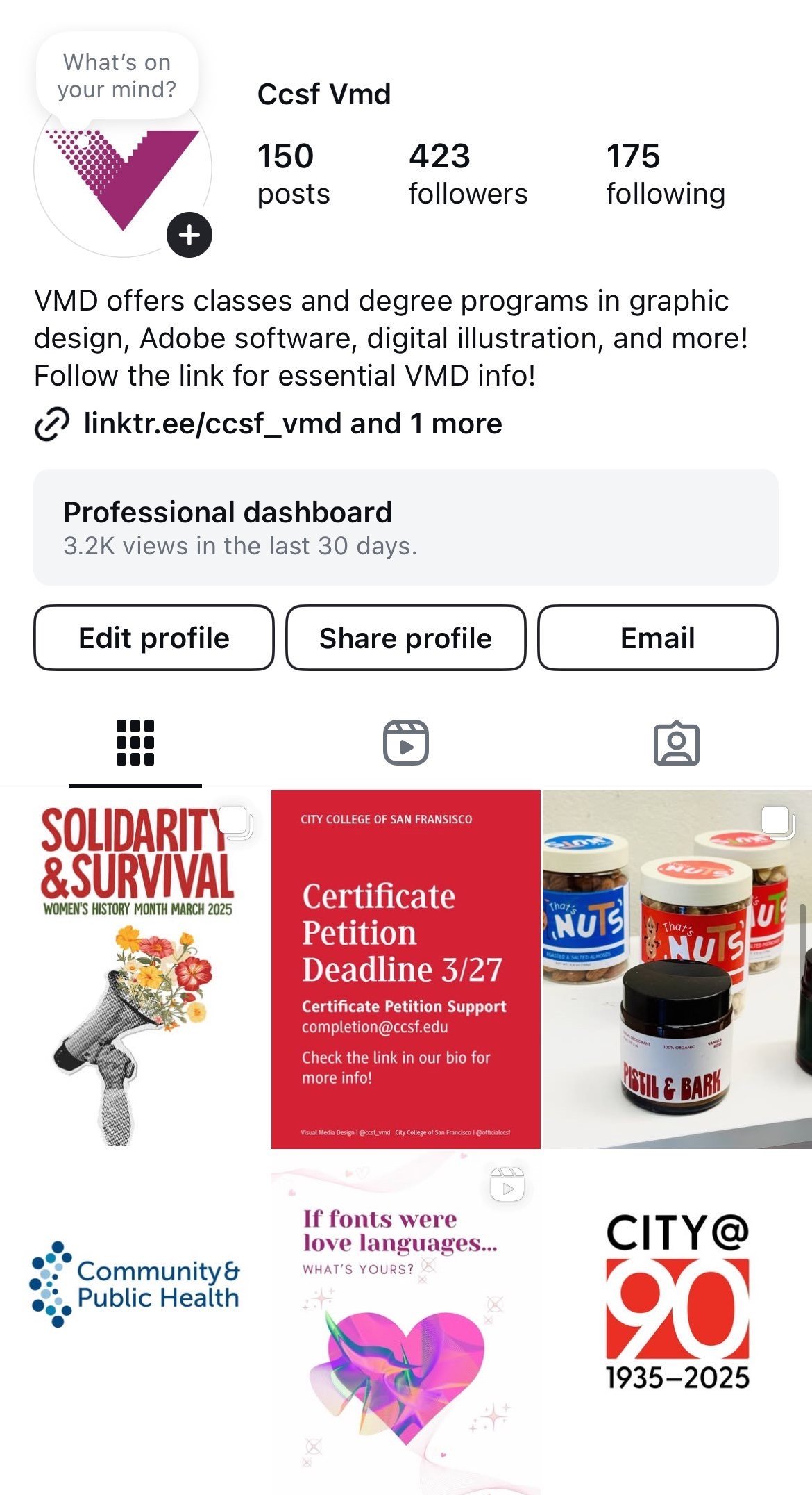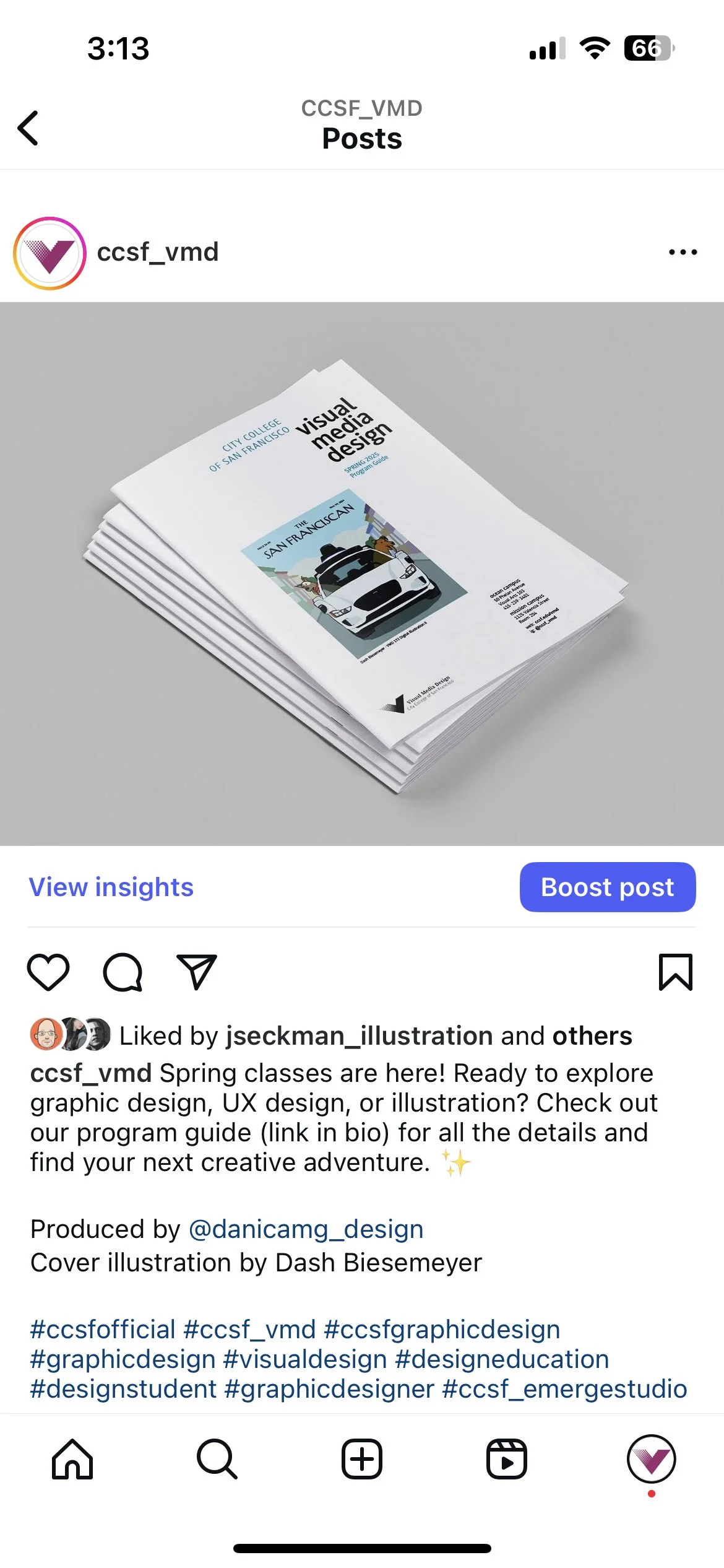The result: an Instagram presence that feels as creative and polished as the work coming out of CCSF’s Visual Media Design program.