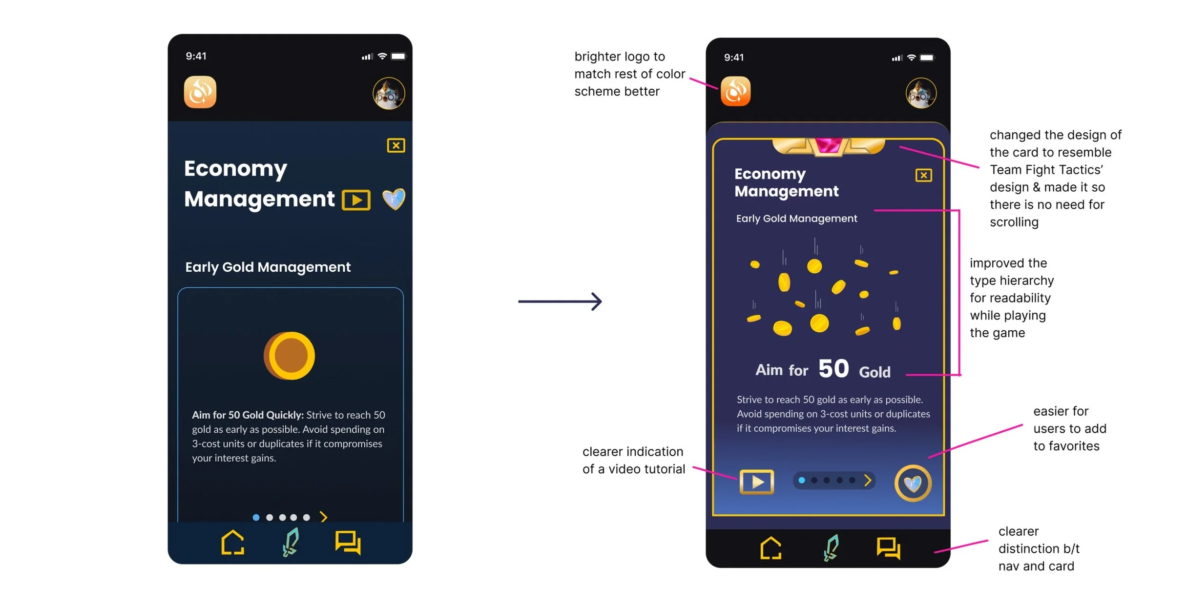 Decision: Patch notes + trending comps were prioritized on the home screen, while guides were accessible but secondary.